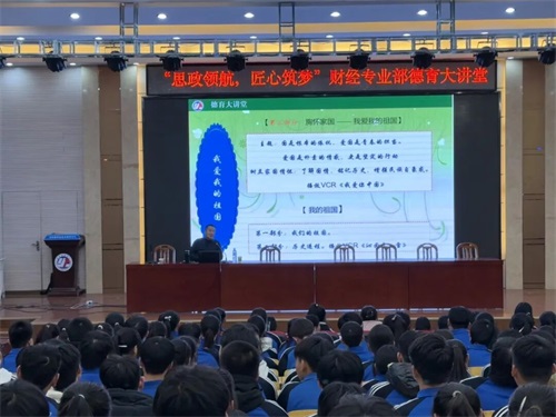 为持续推进“思政引领,匠心筑梦”德育品牌建设,16日,我校财经专业部德育大讲堂开展《爱家乡爱学校爱祖国 做新时代中职学生》主题讲座,引导全体学生坚定理想信念,践行使命担当。就业办郑学海主任主讲,全体财经专业部25级学生参会。