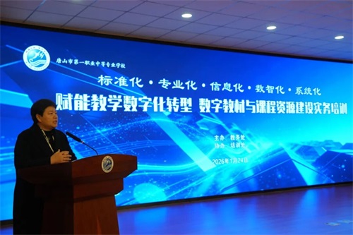 为深入贯彻职业教育数字化转型战略部署,破解教学改革中的数字化瓶颈,筑牢优质课程资源建设根基,1月24日上午,唐山市一职专举办“赋能教学数字化转型 数字教材与课程资源建设实务培训”讲座,邀请行业权威专家莅临指导,全体教师共同参与。李朝红副校长主持。