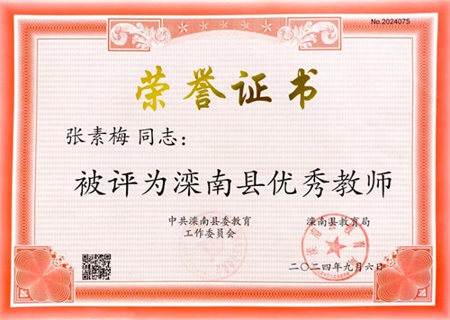张素梅老师被评为滦南县优秀教师