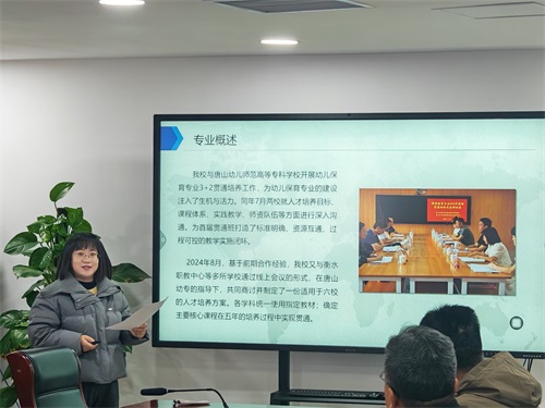 座谈会上,双方领导先后致辞,一致表达了对两校合作的高度重视与期待。丰南职教中心校长韩振天系统介绍了学校的办学理念、专业布局与发展特色。随后,丰南职教中心现代服务部主任王晓全与唐山幼专教务处处长晁彩林围绕中、高职学校"3+2"贯通培养工作进行了专题汇报,双方就人才培养、课程体系衔接、师资交流共建等关键环节进行了细致研讨。