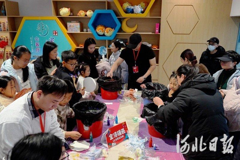 在曹妃甸城市馆二楼的非遗会客厅,非遗文创市集集中展示了面塑、芦苇画、布艺、漆扇等14项非遗作品。这些精巧的手工艺品凝结了传承人的匠心,让传统工艺与现代生活相融合。活动现场还开设了非遗体验课堂,由面塑、芦苇画、漆扇、剪纸等项目的传承人亲自指导,参与者可在动手制作中感受传统手工艺的独特魅力,实现非遗的“活态”传承。