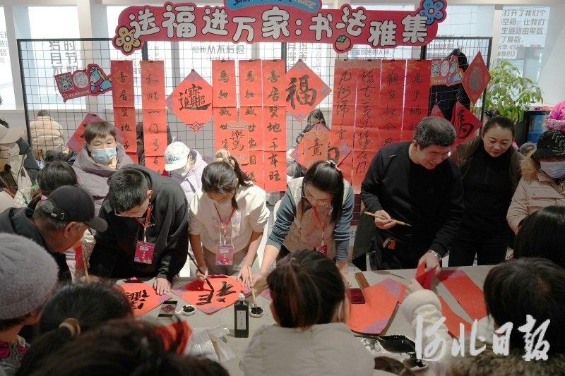 此外,“送福进万家”书法雅集活动贯穿全程,本地书画爱好者现场书写福字、春联,创作吉祥画作,市民还可领取这些充满墨香的新年祝福。区文化馆、图书馆工作人员通过发放宣传资料和主题文创品,向公众推介本地公共文化资源与非遗保护成果。