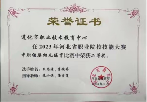 在校期间,朱思源深耕婴幼儿保育专业,以精益求精的态度锤炼技能。在2023年河北省职业院校技能大赛中,她与同伴并肩作战,凭借扎实的专业功底在中职组婴幼儿保育赛项中脱颖而出,斩获二等奖。这份荣誉的背后,是学校对技能培养的高度重视,更是她日复一日刻苦钻研、反复实操的成果,彰显了中职学生潜心向学、追求卓越的精神风貌。