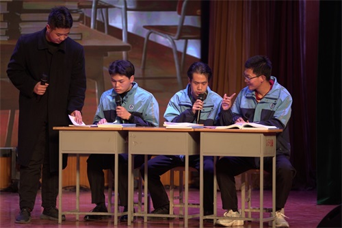 篇章聚焦当下,展现学校“升学与就业并重,品德与技能共育”的育人成果。歌曲《我想大声告诉你》《守护着我的光》表达了师生间深厚的情谊与追逐梦想的信念。创意十足的课桌舞《天地龙鳞》、展现校园日常快乐的《阳光大课间》等节目,生动呈现了学子们丰富多彩的校园生活与青春活力。情景剧《起跑线后的赛跑》,生动展现了职业教育对人生轨迹的深刻塑造。特别设置的“云端祝福”环节,播放了遍布各地优秀校友发来的新年问候,体现了薪火相传的职教情怀。轻松幽默的《小人舞》和互动抽奖环节,更为晚会增添了阵阵欢声笑语。