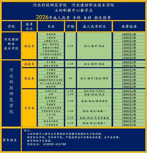2026年玉田职教中心专科、本科
