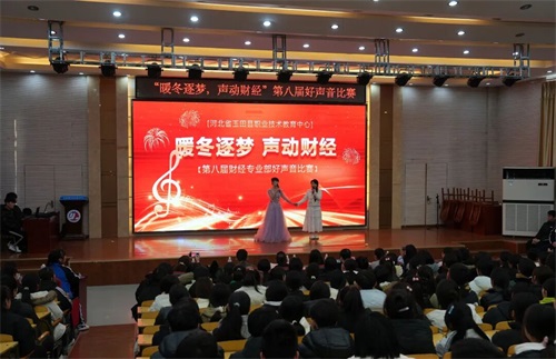 凛冬送暖,歌传心声。近日,玉田职教中心财经专业部第八届“好声音”比赛在热烈氛围中圆满落幕。副校长董立新、政教处主任张建平出席活动。财经专业部百余名师生参加活动。