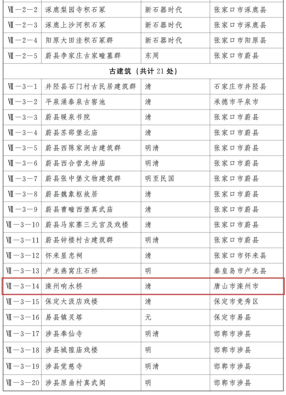 河北日报客户端消息(记者 龚正龙)1月4日,记者从河北省文物局获悉,《河北省人民政府关于公布第七批省级文物保护单位的通知》于2025年12月31日正式下发。经河北省人民政府核定,河北省第七批省级文物保护单位共70处。其中包括正定开元寺南遗址等古文化遗址17处,宣化积石冢群等古墓葬5处,蔚县暖泉书院等古建筑21处,涉县毗卢阁摩崖造像等石窟寺和古石刻3处,阜平晋察冀日报社旧址等近代现代重要史迹和代表性建筑24处。