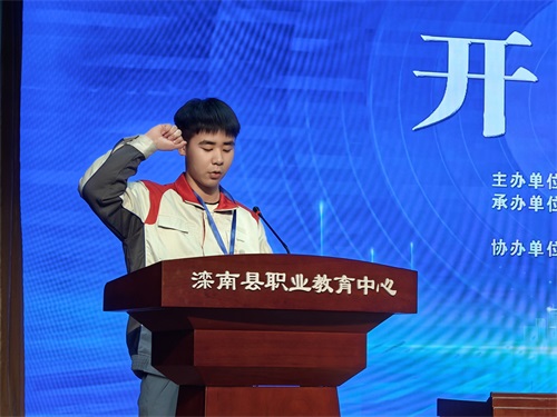 唐山市教育局高教职成科副科长王琨在讲话中充分肯定了滦南职教中心近年来取得的办学成果。他表示,此次省赛再次落户滦南,体现了上级部门对滦南职业教育发展的充分信任与激励,并寄语参赛师生“赛出风格、赛出水平”,要以此次大赛为契机,进一步推动全省职教学子传承匠心、精进技能,为加快建设教育强省贡献力量。