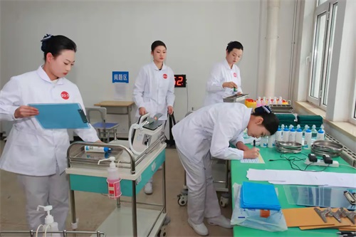 自备赛启动后,学校领导、教务处负责人等多次深入实训室查看备赛情况,全程保障备赛需求,全力升级心肺复苏模拟人、静脉输液模拟手臂等实训硬件,配齐急救设备与护理器械,为选手打造最优训练环境。