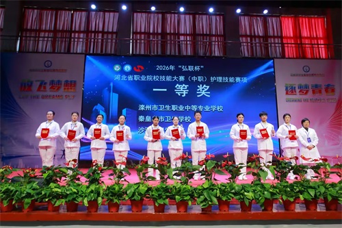 1月15日上午,2026年“弘联杯”河北省职业院校技能大赛(中职)护理技能大赛完美落下帷幕!山东中医药高等专科学校护理系主任高占玲、上海弘联科技有限公司河北市场部经理刘彤、北京神州医博教育科技有限公司华北区域销售总监杜伟出席闭幕式。