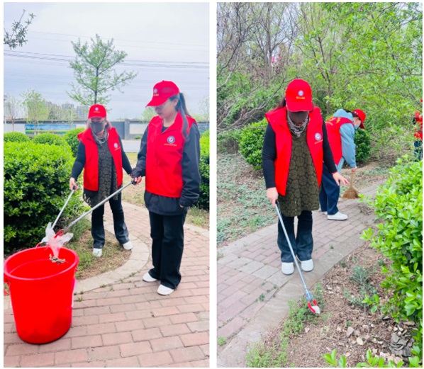 2025年4月18日清晨,南三环畔党旗飘扬。党员们手持垃圾钳、拎着环保袋,对绿化带进行"地毯式清理"。