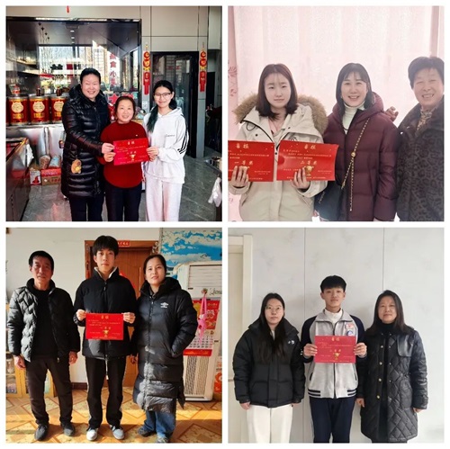 一纸喜报,承载荣耀;一份奔赴,传递温情。为让这份拼搏的荣光与家校共享,学校特别定制专属喜报,利用寒假期间,由班主任们化身“喜报使者”,奔赴每一位获奖学子家中,亲手将喜报送到家长与孩子手中,让荣誉直达家门,让喜悦浸润心田。