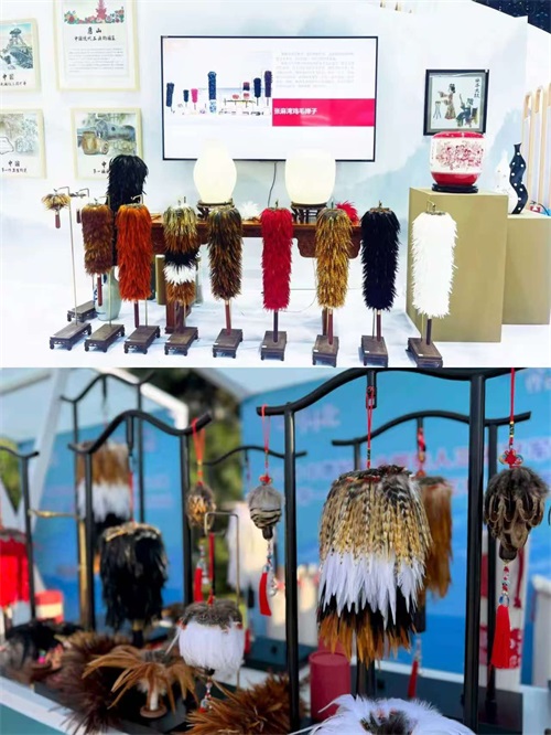 在姚王庄镇张麻湾村,杨书记一行在镇人大主席张杰、村书记刘文豪的陪同下,先后走进非遗鸡毛掸子生产基地的加工仓储区与样品展示间,近距离观摩挑选鸡毛、绑扎、穿线、固定等古法制作工序,详细询问这一传承500余年非遗项目的工艺特色、产业规模及市场布局。据悉,张麻湾鸡毛掸子历史可追溯至明朝中期,如今已从单一清洁工具升级为兼具实用与文化内涵的特色文创产品,不仅注册了“张麻湾”品牌,开发出30余种款式,还斩获唐山市文创和旅游商品创意大赛金奖、中国特色旅游商品大赛铜奖等多项荣誉,成功进驻河头老街、唐山宴、唐山百货大楼等文旅商超点位,更通过直播带货走向全国,曾在12分钟内热销398把,成为滦南文创产业的亮丽名片。