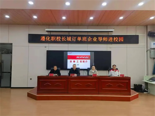 为深化校企合作、推进产教融合,扎实落实中国特色社会主义学徒制育人要求,完善双导师制度,3月26日,遵化市职业教育联合学校特邀长城汽车股份有限公司天津哈弗分公司企业导师进校园,为25级长城订单班学生开展专题宣讲活动。活动由招生就业处主任郝玉生主持。