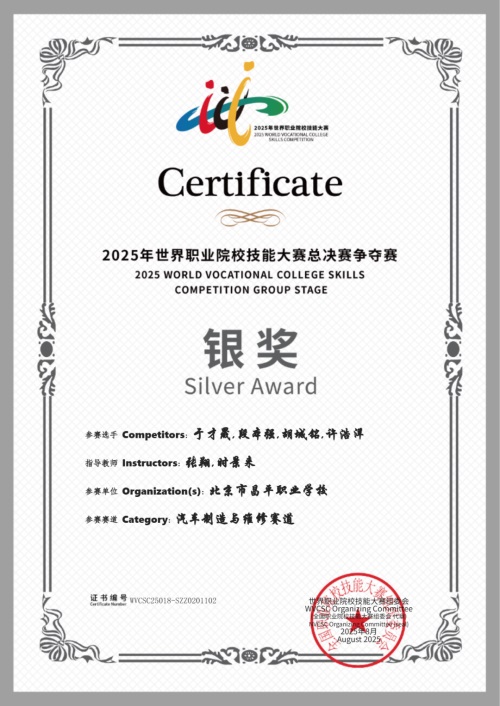 2025年8月,荣获2025年世界职业院校技能大赛总决赛争夺赛 银奖