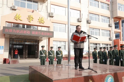 升旗礼毕,政教处主任安匀彬发表国旗下讲话,以“自律为帆、安全健康为基”为核心,为同学们的寒假生活精准导航。他号召同学们科学规划假期,坚持目标打卡,在自主管理中实现自我超越。