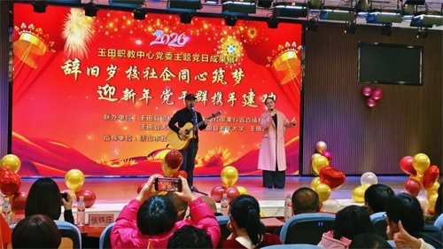 活动中,多支以党支部为单位的表演队伍齐聚一堂,用灵动曼妙的舞姿、清脆嘹亮的歌声,传递着对新年的美好期许。全体党员与入党积极分子集体宣誓,重温入党誓词,将活动氛围推向高潮。我校第一、第三党支部联合表演的三句半《我们的校园真是好》,以简洁的语句,从精品校、示范点、新校区等方面,生动讲述了充满生机与荣耀的玉田职教中心。随后,诗朗诵、合唱、集体舞等节目轮番上演。动感的节奏、整齐划一的舞姿,令人陶醉其中,赢得现场阵阵掌声。活动在大合唱《没有共产党就没有新中国》的歌声中圆满落幕。