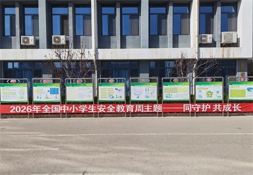 为营造浓厚的安全教育氛围,学校在教学楼前悬挂了“2026年全国中小学生安全教育周主题——同守护 共成长”宣传条幅。鲜红的条幅不仅成为校园内一道亮丽的风景线,更如同一座警示钟,时刻提醒师生关注安全,增强安全意识。